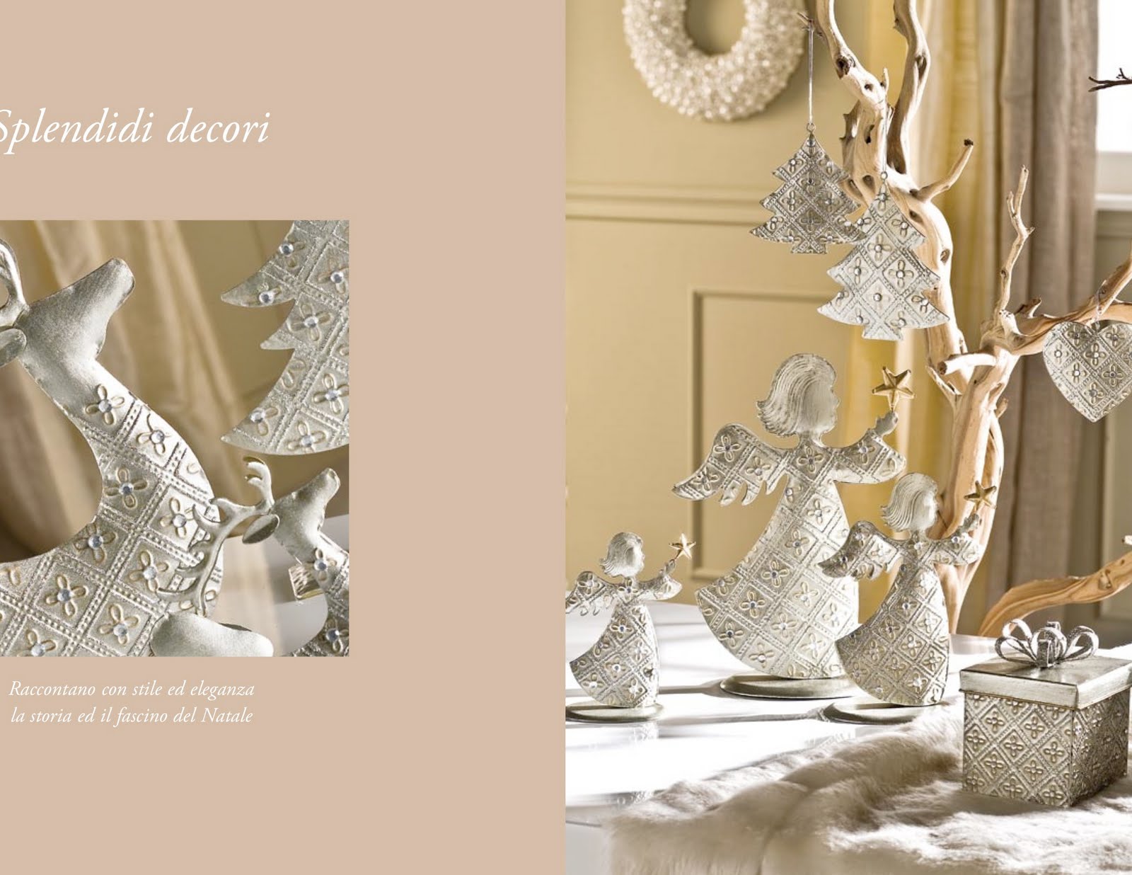 Queste decorazioni in vetro opalino con le candele sono assolutamente fantastiche e anche i pinetti in vaso e le decorazioni in stoffa bianche...non conoscevo questo marchio ...vado subito a farci un giretto!